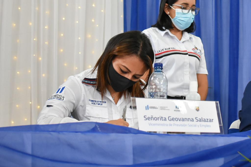 El acto se realizó en las instalaciones del auditorio municipal de la Municipalidad de San Pedro Carchá, con la presencia de la Viceministra de Previsión Social y Empleo, Geovanna Salazar y del alcalde del municipio, Winter Coc Ba. El periodo del convenio entra en vigencia a partir de hoy y finalizará en un plazo de dos años, los cuales pueden ser prorrogados por mutuo acuerdo mediante comunicación escrita entre los firmantes.