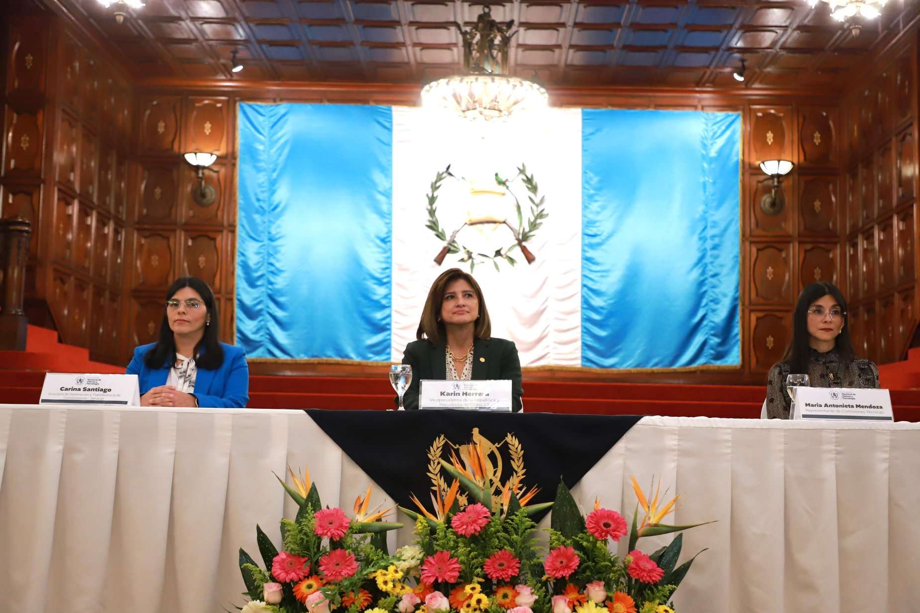 “Tenemos que ser motores de cambio, si queremos ese desarrollo sostenible e inclusivo para la sociedad guatemalteca”, expresó la vicepresidenta de la República, y presidenta del Consejo Nacional de Ciencia y Tecnología, Karin Herrera, durante la juramentación de las juntas directivas de las 17 Comisiones técnicas sectoriales e intersectoriales del Sistema Nacional de Ciencia y Tecnología (Sincyt) 2024.
