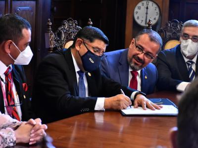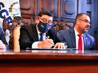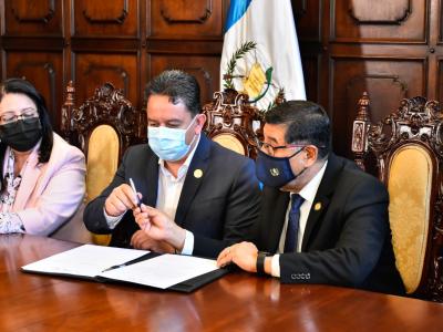 Por las municipalidades firmaron los alcaldes de los municipios de San Marcos, Willy René Juárez González; San Rafael Pie de la Cuesta, Over Leonel Reyna Escobar; Ciudad Vieja; Clemente Federico Bethancourt Sánchez; Santiago Sacatepéquez, Salomón Itzol Pec; Poptún, Vicente Alfredo Gil Castillo y de San Benito, Carlos Antonio Kuylen Morales.