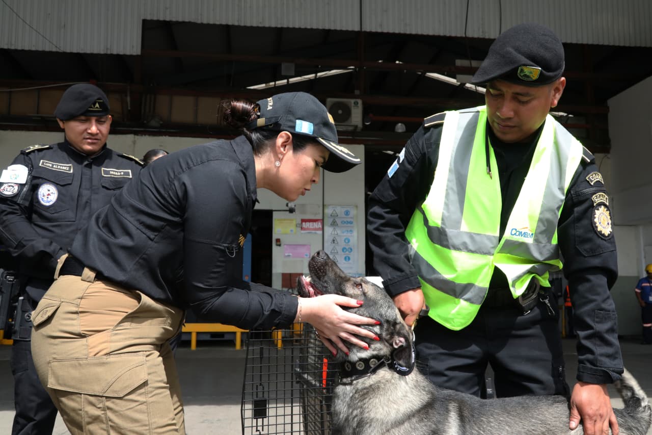 La Viceministra de Antinarcóticos y Seguridad Fronteriza, Claudia Palencia, recibió a los canes en las bodegas de COMBEX-IN. Destacó que serán distribuidos en distintas unidades operativas del Ministerio de Gobernación (Mingob). Además, enfatizó en la importancia de esta cooperación en el combate frontal contra el narcotráfico y las diversas estructuras criminales.