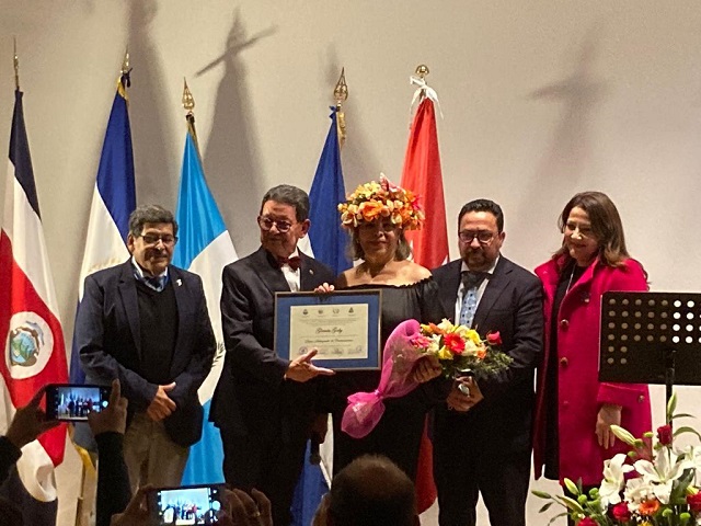Al finalizar el concierto, los embajadores de los países centroamericanos le entregaron un reconocimiento como “Dama distinguida y amiga de Centroamérica”, el cual agradeció con emoción y orgullo.