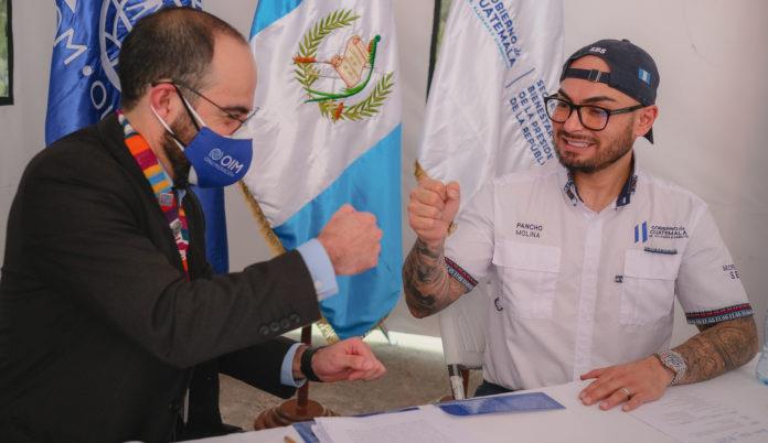 Francisco Molina, titular de la SBS, junto a José Diego Cárdenas, oficial nacional de proyectos OIM, suscribieron el memorándum de entendimiento, que permitirá percibir el apoyo de la OIM, el cual consiste en acciones de cooperación a programas de apoyo a menores que buscan migrar del país sin la compañía de un adulto y que son repatriados desde países de Norteamérica.