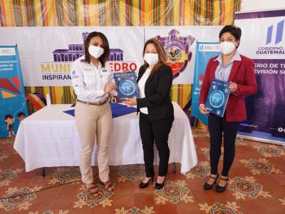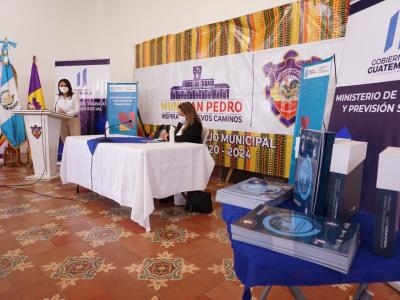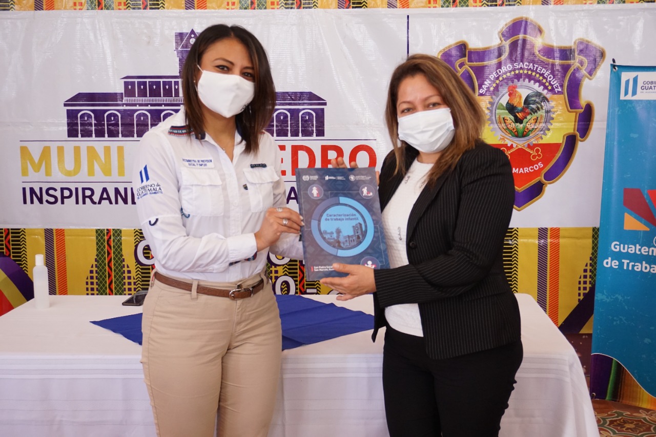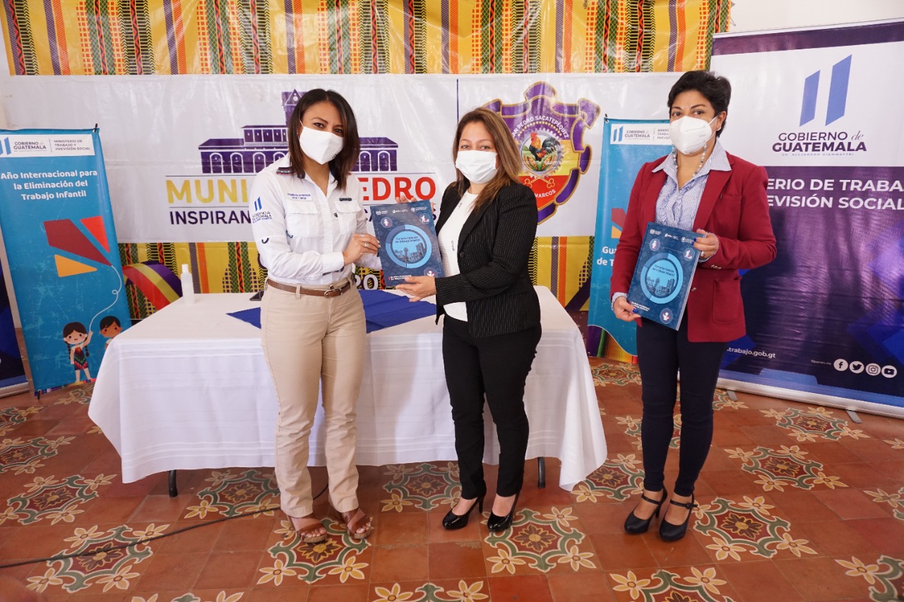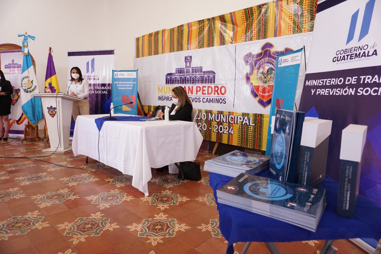 El acto de presentación y entrega oficial, se llevó a cabo en el Salón de Honor, de la Municipalidad de San Pedro Sacatepéquez y contó con la participación de la Viceministra de Previsión Social y Empleo, Geovanna Salazar; la Concejal Tercera del municipio, Ana Lucrecia López; y los representantes de la Iniciativa Regional América Latina y el Caribe libre de trabajo infantil de la OIT, Ana María López y Julio García.