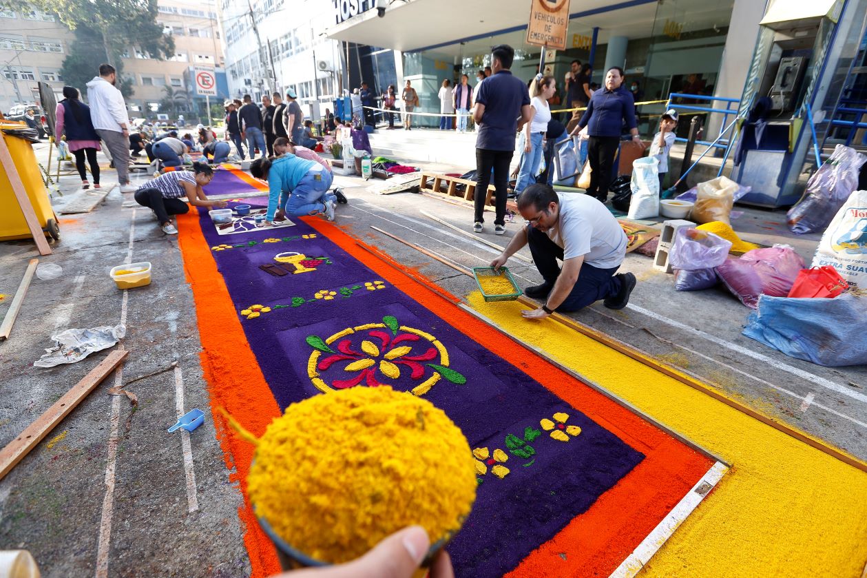El aroma a incienso, corozo y aserrín invadieron el Hospital Roosevelt donde con alegría y entusiasmo el personal elaboró alfombras y altares para embellecer el viacrucis y el cortejo procesional del Nazareno de la Iglesia Montserrat, zona 19. Estas actividades contribuyen a la salud mental de los trabajadores para que, a su vez, brinden un mejor servicio a la población.
