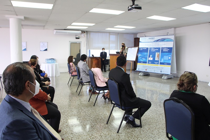 “Estamos dispuestos a continuar con el esfuerzo por modernizar la institución”, dijo la Directora de la Oficina Nacional de Servicio Civil (Onsec), MSc. Karla Johana Alvarado, durante el lanzamiento de dos aplicaciones web con las que se mejorarán algunos servicios en línea de la Oficina.
