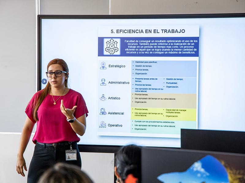 La capacitación estuvo a cargo de la licenciada Andrea Veliz, de la Dirección de Carrera Administrativa de la ONSEC, quien, durante varias sesiones, expuso acerca del Manual de Gestión del Desempeño al personal de 37 instituciones del Organismo Ejecutivo y otras entidades regidas por la Ley de Servicio Civil.