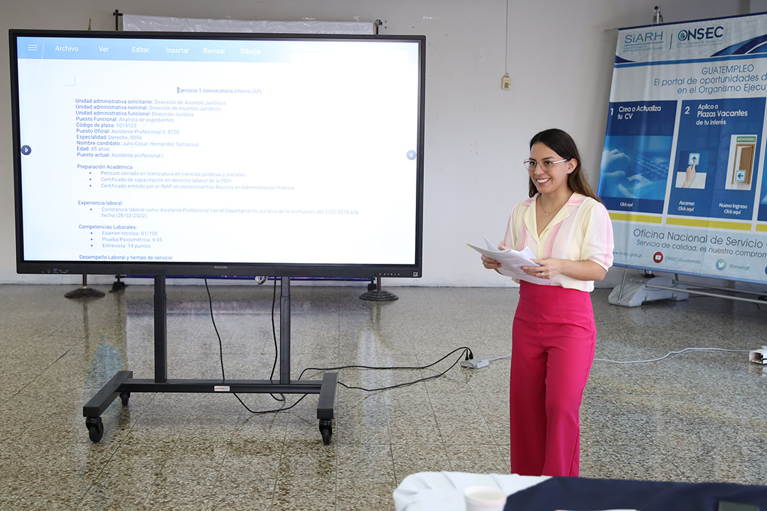 La ONSEC brindó la capacitación como entidad responsable de asesorar y capacitar a las instituciones del Organismo Ejecutivo que se rigen por la Ley de Servicio Civil y su Reglamento en materia de dotación de recursos humanos.