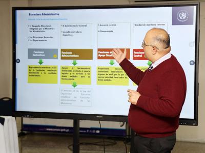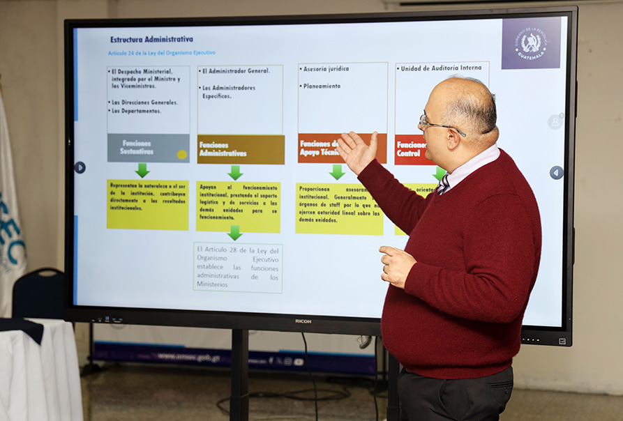 El licenciado Elder Rossi, de la Dirección de Puestos y Remuneraciones de la ONSEC, fue quien impartió la capacitación, en la cual explicó la base legal de un ROI. Los conocimientos compartidos son de utilidad cuando las instituciones necesitan elaborar o reformar dicho documento.