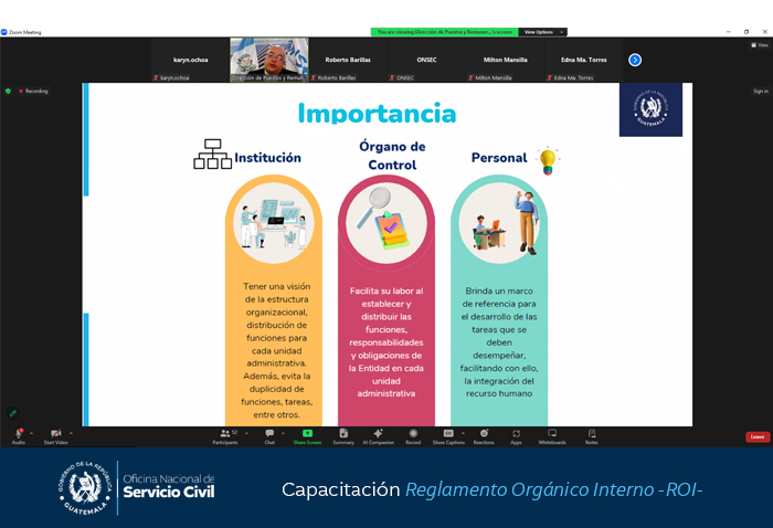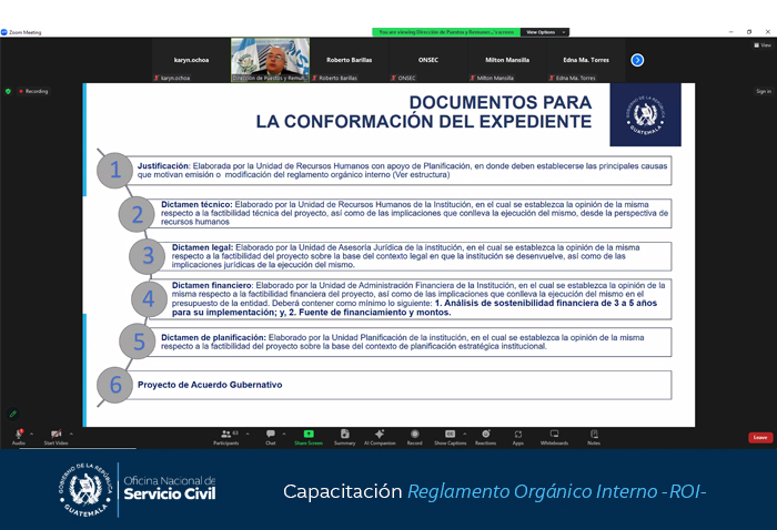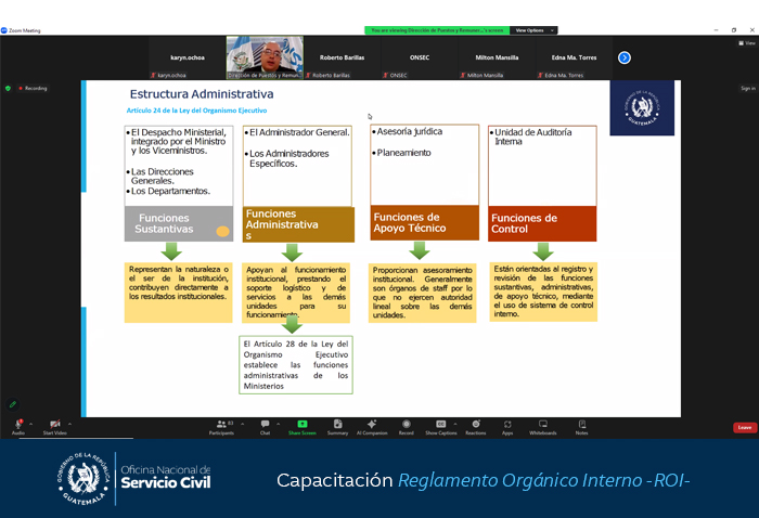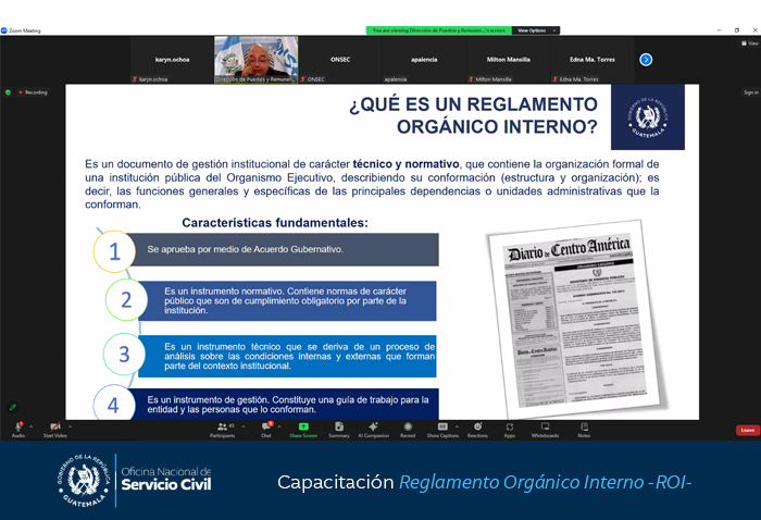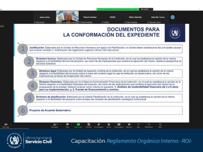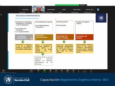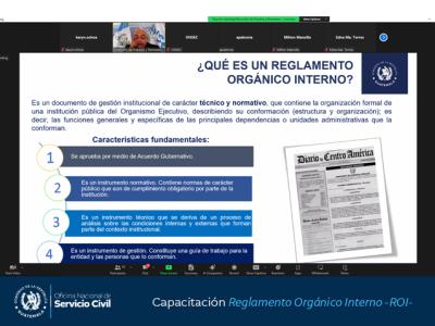 Con el objetivo fortalecer los conocimientos de los servidores públicos involucrados en el proceso de reforma o elaboración del Reglamento Orgánico Interno -ROI-, la Oficina Nacional de Servicio Civil -ONSEC- brindó hoy una capacitación virtual.