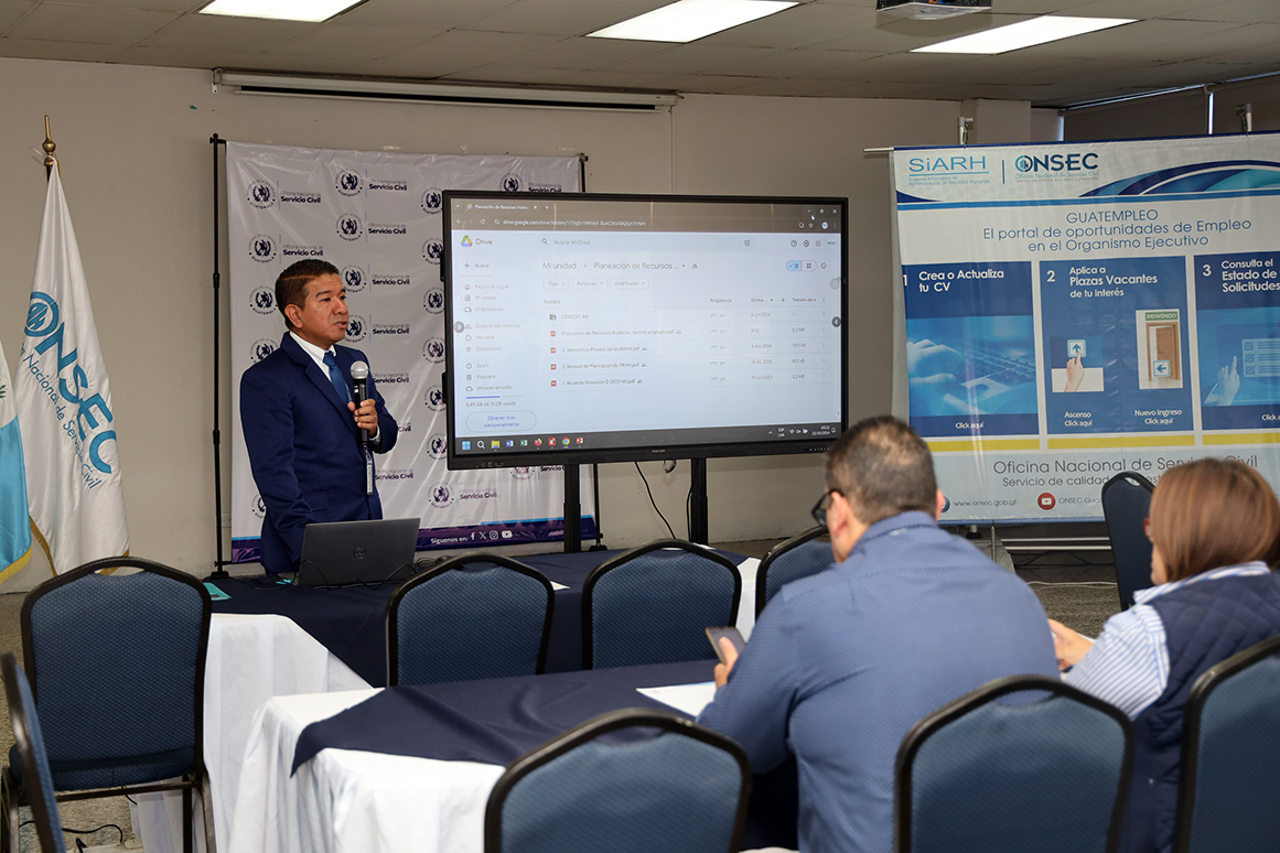 Se trata de un refuerzo de conocimientos para que las instituciones del Organismo Ejecutivo regidas por la Ley de Servicio Civil y su Reglamento cumplan con cargar información de los manuales de Gestión de Bienestar Laboral y de Planeación de Recursos Humanos, informó el jefe del Departamento de Investigación de la Dirección de Investigación y Desarrollo de la ONSEC, Lic. Luis Coguox.