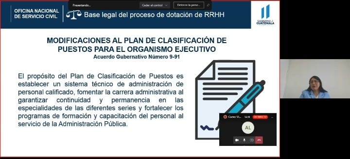 La Oficina Nacional de Servicio Civil (Onsec) participó en el segundo curso virtual organizado por el Consejo Económico y Social de Guatemala (CES) que fue dirigido a personal de recursos humanos, de unidades de planificación y servidores públicos en general.