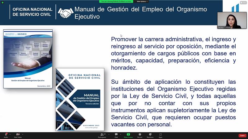 “Es imperativo que participemos en este tipo de charlas que nos refrescan el conocimiento y que nos permiten conocer las innovaciones tecnológicas que tenemos en la Onsec para apoyar a quienes laboran en direcciones de recursos humanos”, dijo la Directora de la Oficina Nacional de Servicio Civil (Onsec), MSc. Karla Johana Alvarado, durante la conferencia virtual Carrera Administrativa y Servicio Civil.