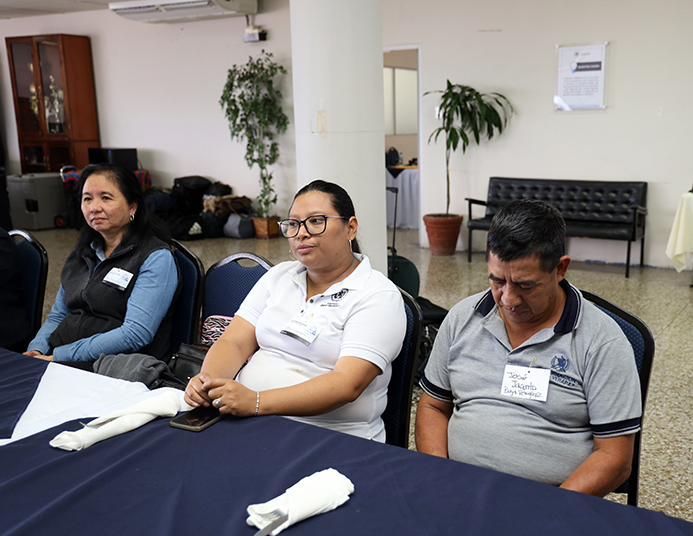 Junto a la Directora Gómez estuvo la Directora y el Subdirector de Previsión Civil, licenciada Julia Orellana y licenciado Julio de León, respectivamente, asimismo, el Subdirector de la ONSEC, M. A. Juan Carlos Carrera, quien agradeció el compromiso de los participantes de la capacitación.