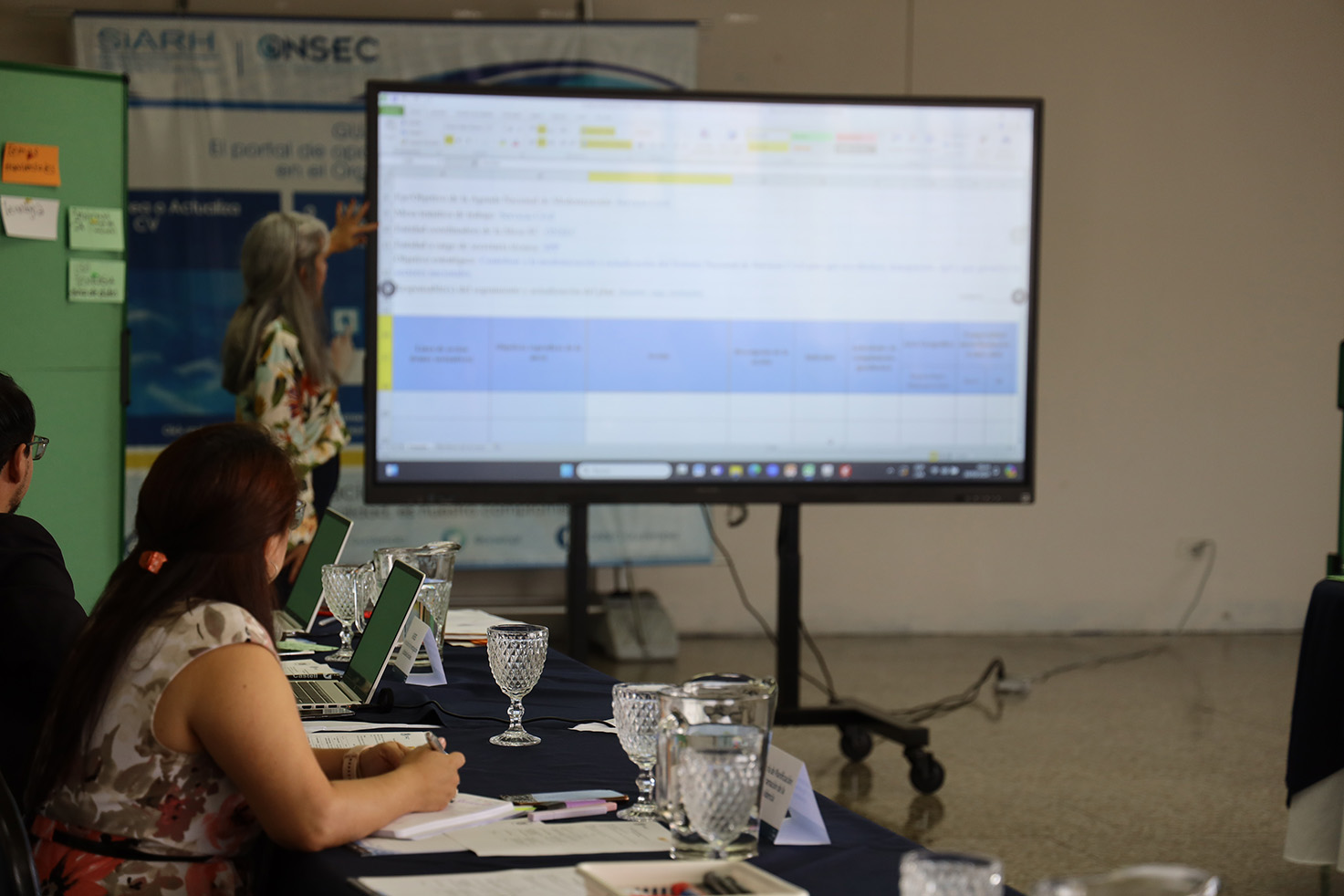 La facilitadora fue Ana Silvia Escobar, quien hizo un repaso de los avances obtenidos en la sesión anterior y dirigió el diálogo entre los funcionarios.
