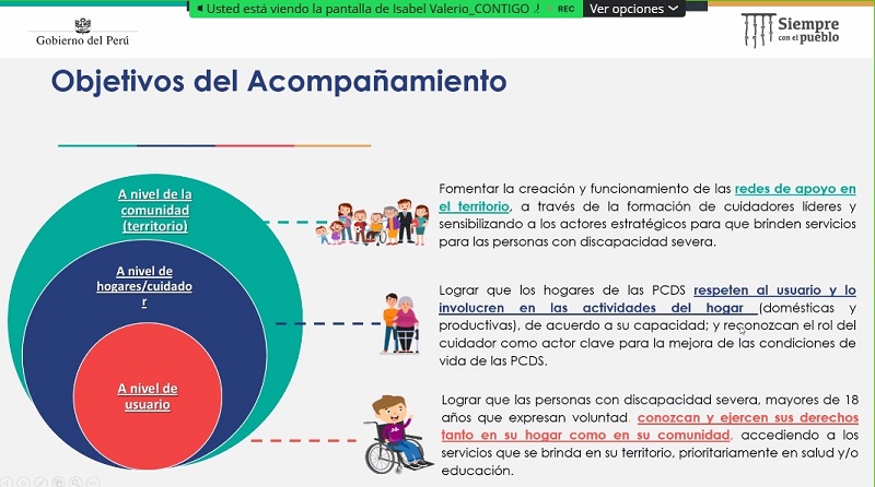 La licenciada Sandra Girón, Directora de la Dirección de Previsión Civil, fue quien representó a la Onsec, por la vía virtual, en dicho encuentro que coordinó el Programa Integral Nacional para el Bienestar Familiar (Inabif), institución adscrita al Ministerio de la Mujer y Poblaciones Vulnerables (MIMP) de Perú.