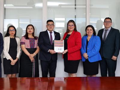 La Directora de la ONSEC, MSc. Karla Gómez, junto con el Subdirector, M. A. Juan Carlos Carrera Campos, recibieron el documento tras reunirse con el titular de Codisra, licenciado Leopoldo Chuc.
