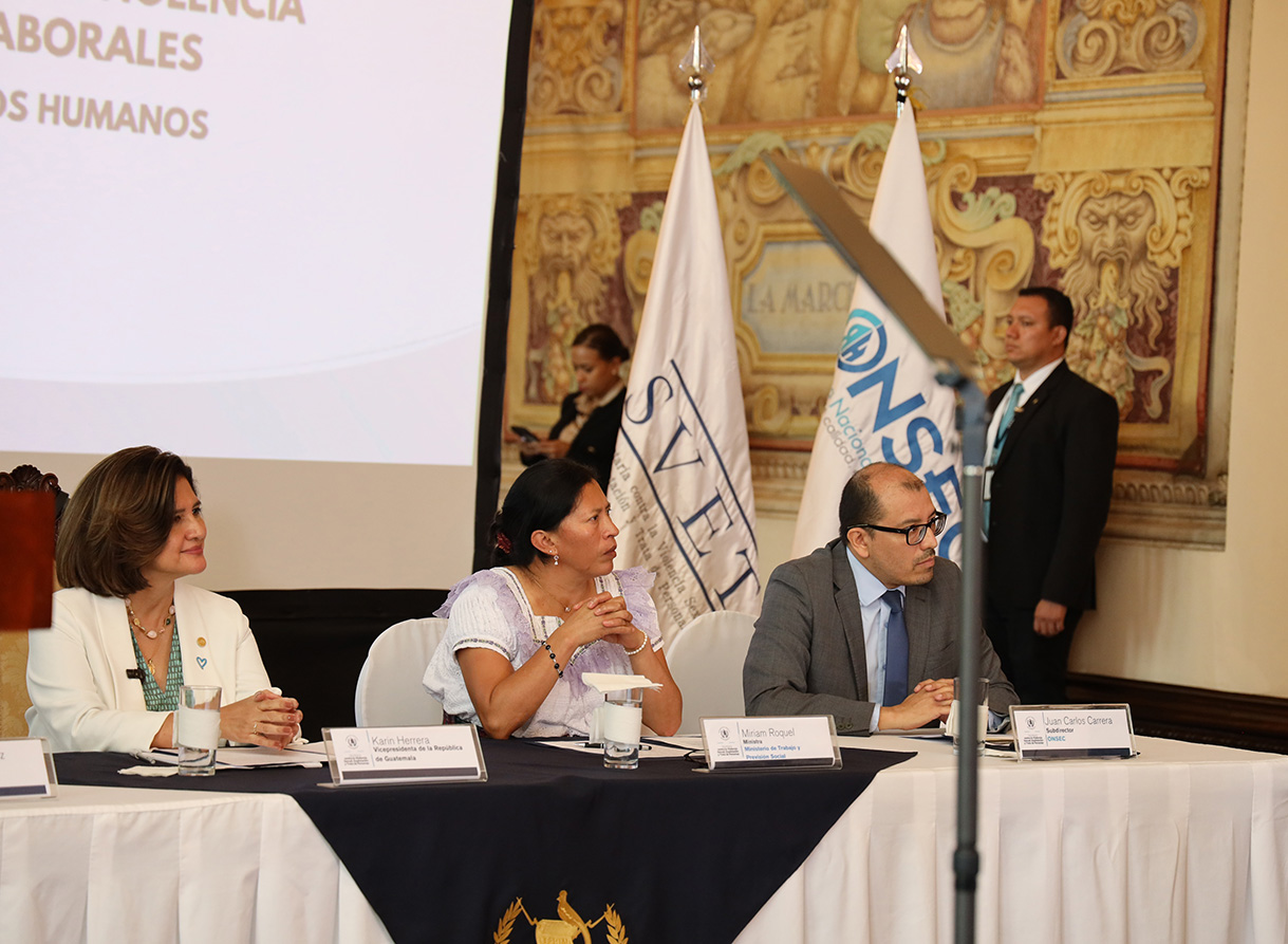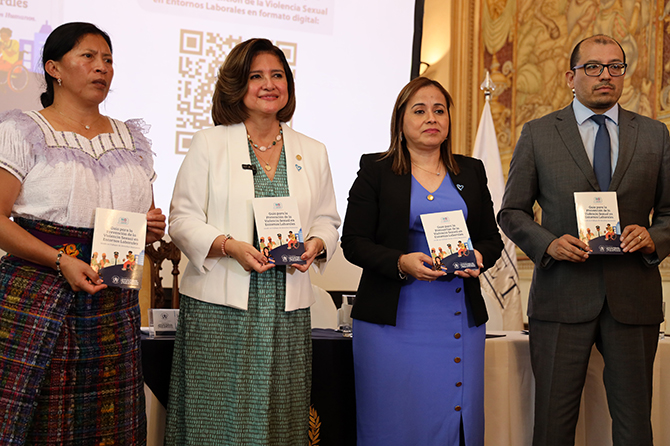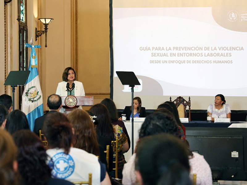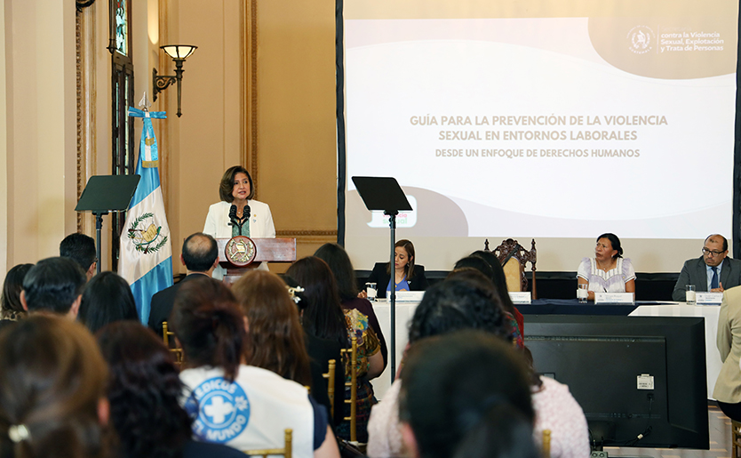 Se trata de la Guía para la Prevención de Violencia Sexual en Entornos Laborales que fue presentada por la Secretaría contra la Violencia Sexual, Explotación y Trata de Personas -SVET-, acto en el que estuvieron presentes varias autoridades, entre ellas, la Presidenta en Funciones, Karin Herrera.