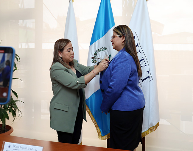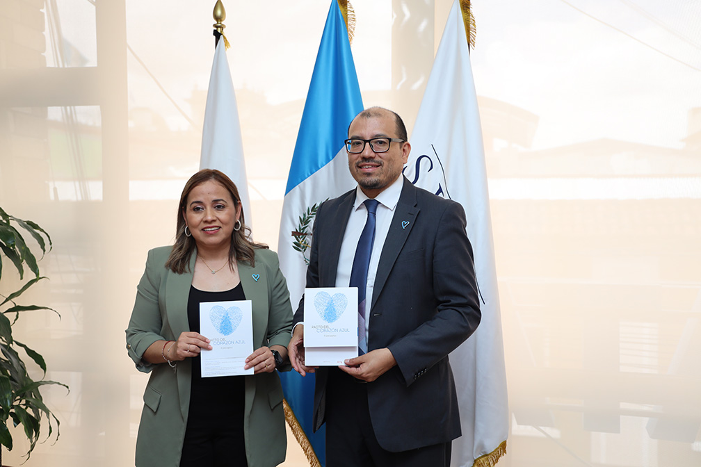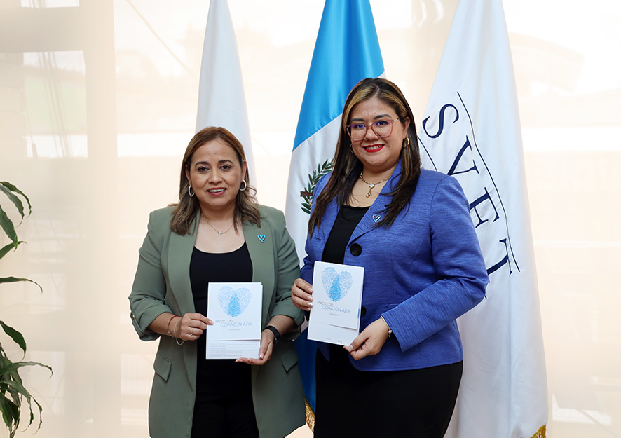 La Directora de la ONSEC, MSc. Karla Gómez, firmó el Pacto del Corazón Azul, junto a la secretaria Ejecutiva de la Secretaría contra la Violencia Sexual, Explotación y Trata de Personas -SVET-, licenciada Danissa Ramírez, quien le impuso un pin con el cual se simboliza la campaña.