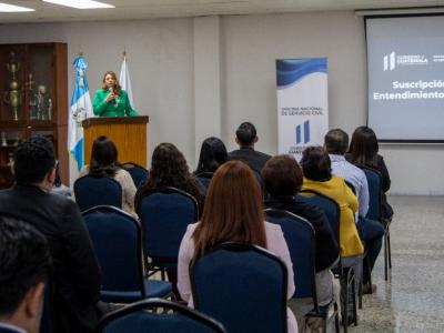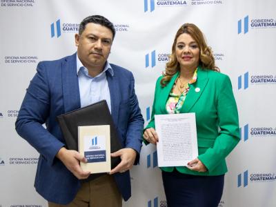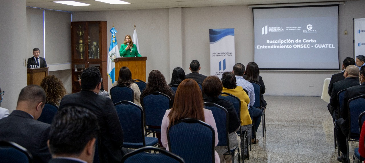La Directora de la Oficina Nacional de Servicio Civil -Onsec-, MSc. Karla Johana Alvarado, firmó una carta de entendimiento que permitió la entrega de una base de datos y accesos a la Empresa Guatemalteca de Telecomunicaciones -Guatel- para facilitar la consulta de información del Régimen de Previsión Social del Empleado de Guatel.