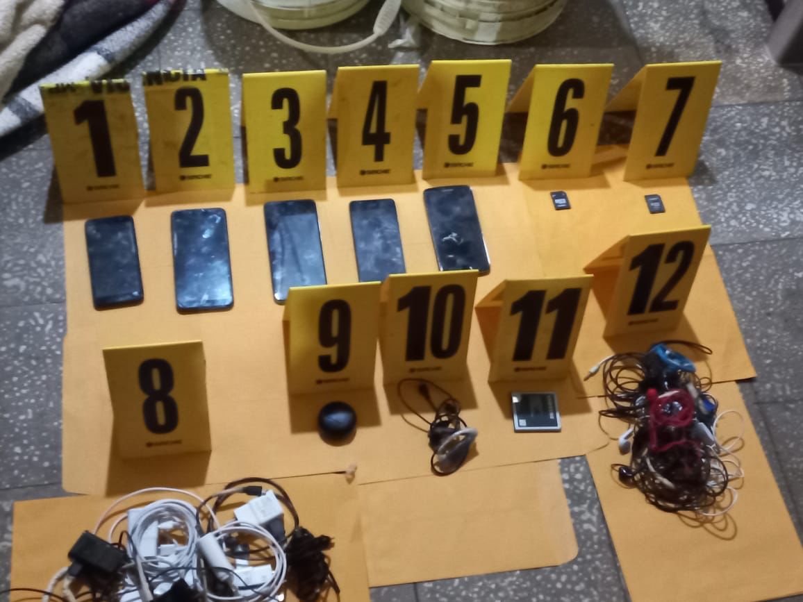 Durante las diligencias, fueron localizados 42 dispositivos móviles, 78 cargadores para teléfono, 58 auriculares, 9 antenas generadores de señal para internet o telefonía, 5 paquetes con marihuana, 178 bolsas con diferente tipo de droga, 17 envoltorios con piedra crack, 5 pesas digitales, 7 routers, 5 reproductores MP3, 2 tarjetas SIM, 8 baterías para celular, juegos pirotécnicos, bocinas, tijeras, DVD portátiles, objetos punzocortantes, memorias USB y documentos varios, entre otros ilícitos.