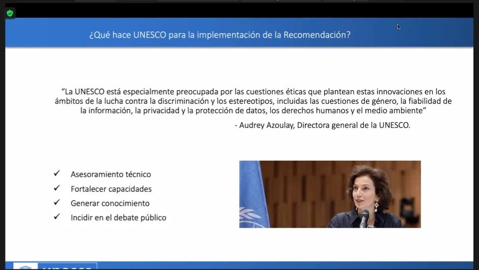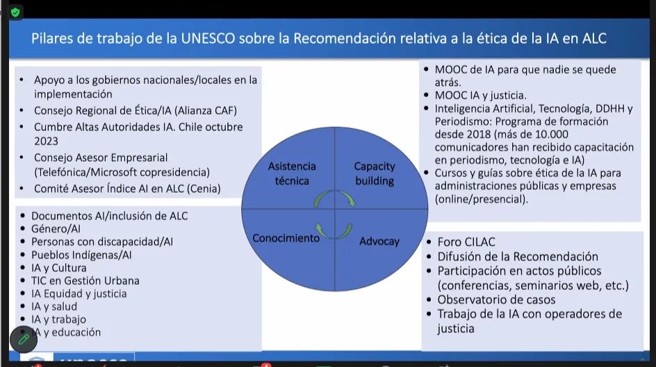 Para fortalecer la capacidad de desarrollar, consolidar y supervisar los sistemas inclusivos de ciencia, tecnología e innovación y proporcionar información de CTi para la toma de decisiones, Ana Chan, Secretaria Nacional de Ciencia y Tecnología, participó en el Foro Abierto de Ciencias de América Latina y el Caribe (CILAC) en donde expuso sobre las acciones que la Senacyt realiza para abordar la inteligencia artificial. El encuentro virtual fue dirigido por la Oficina Regional de la UNESCO en Montevideo, Uruguay.
