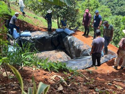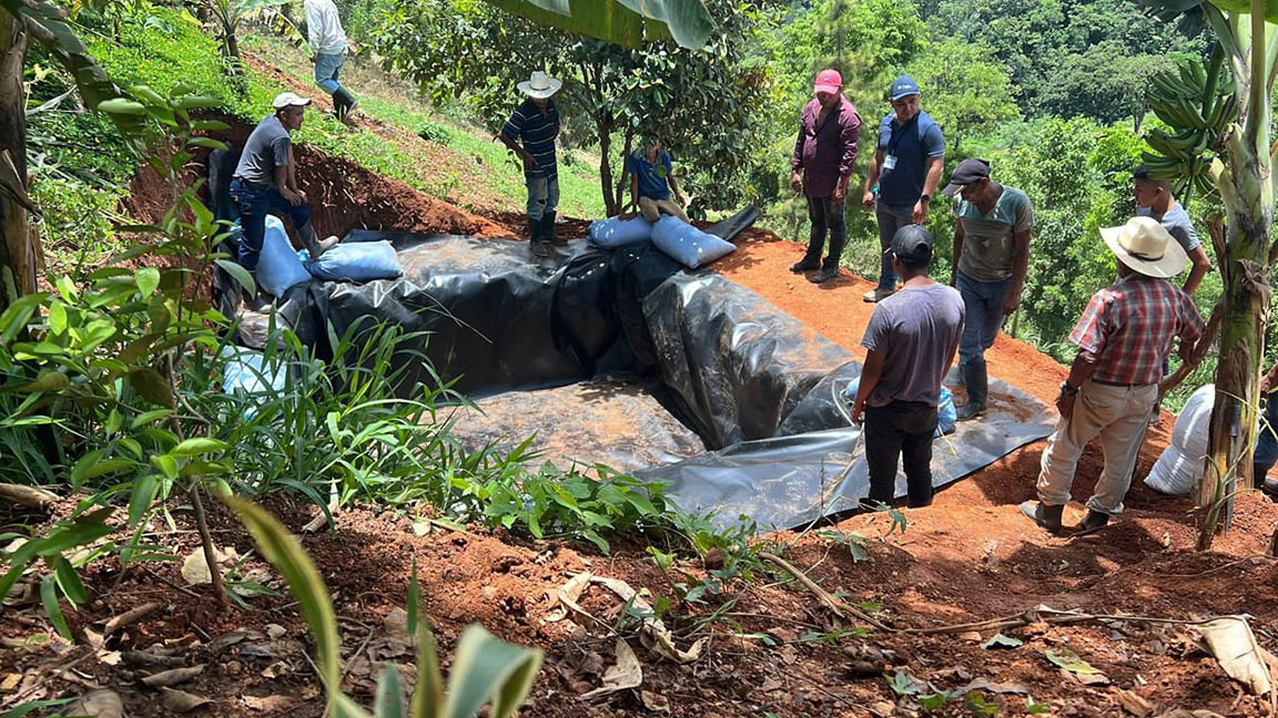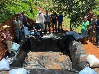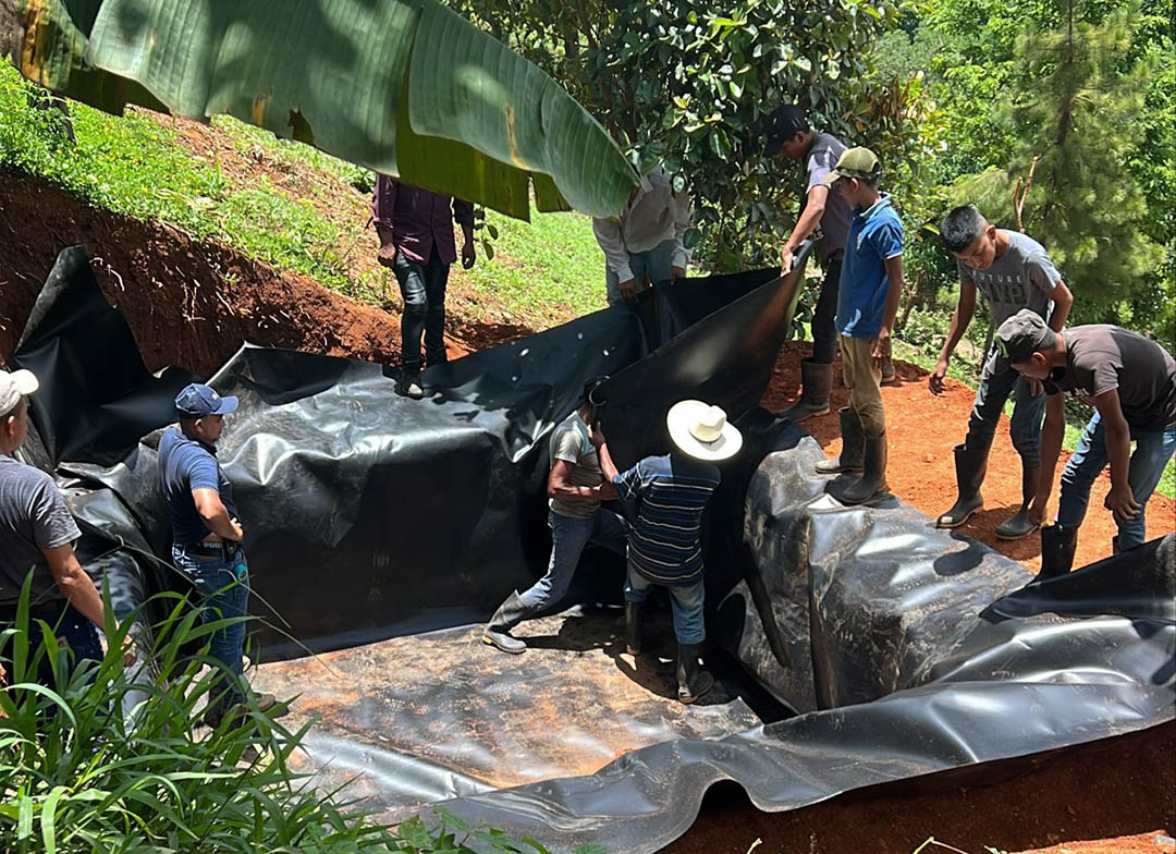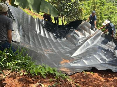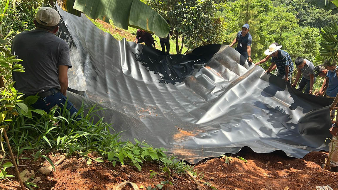 En la aldea Corozal Abajo, del municipio de La Unión, Zacapa, el Ministerio de Agricultura, Ganadería y Alimentación (MAGA) realizó colocación de una geomembrana en un reservorio para la captación de agua de lluvia, lo cual beneficia a 21 familias de la comunidad.