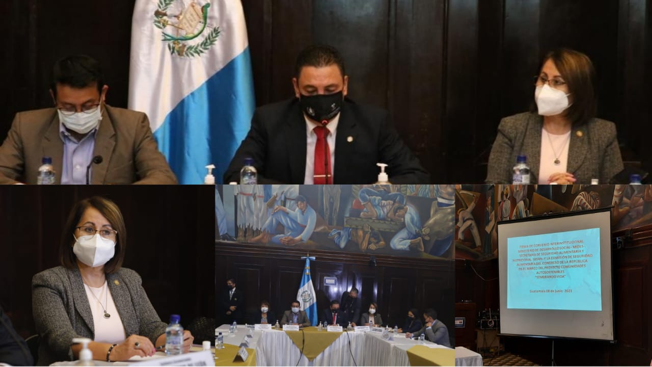 Para realizar acciones conjuntas entre los Organismos Ejecutivo y Legislativo, encaminadas a promover la seguridad alimentaria de la población de Cunén, El Quiché, en el marco del proyecto “Sembrando Vida”, la titular de la Secretaría de Seguridad Alimentaria y Nutricional (Sesan), María Eugenia de León, la Comisión de Seguridad Alimentaria del Congreso de la República y el Ministerio de Desarrollo Social (Mides) firmaron un convenio de cooperación y coordinación interinstitucional.