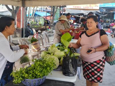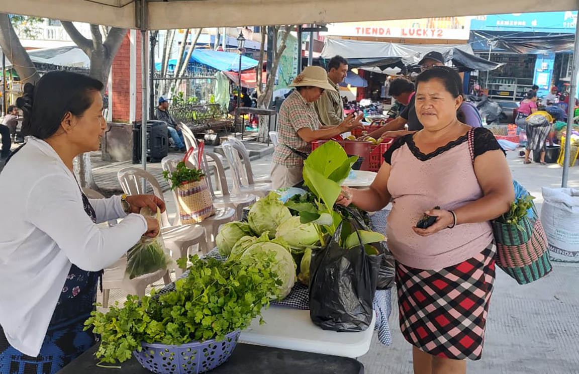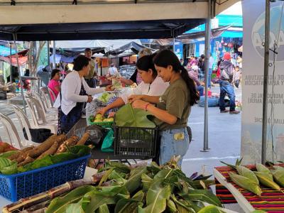 En el espacio comercial los agricultores ofrecieron distintos productos frescos y elaborados, incluyendo tomate, cebolla, rábanos, aguacate, limón, banano, elotes crudos y cocidos, tamalitos de siete camisas, tostadas, atol de arroz en leche y mermelada de fresa.