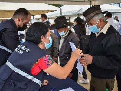 Guatemala 30 de septiembre de 2021. Como parte de la estrategia para ampliar la cobertura del Programa Económico del Adulto Mayor (PAM), el Ministerio de Trabajo y Previsión Social, notificó a más de 200 adultos mayores en extrema pobreza del Municipio de San Juan Sacatepéquez.