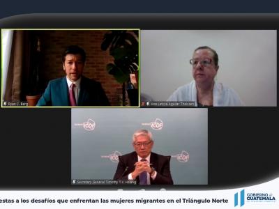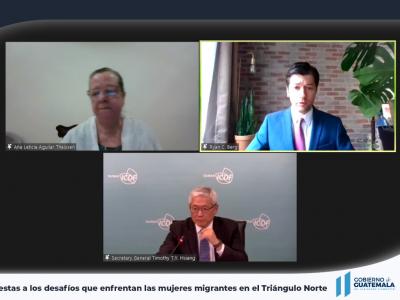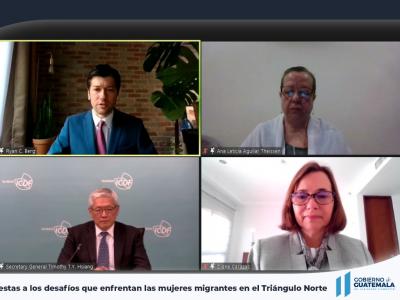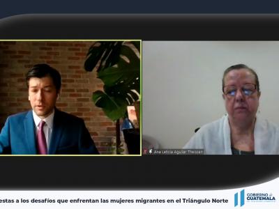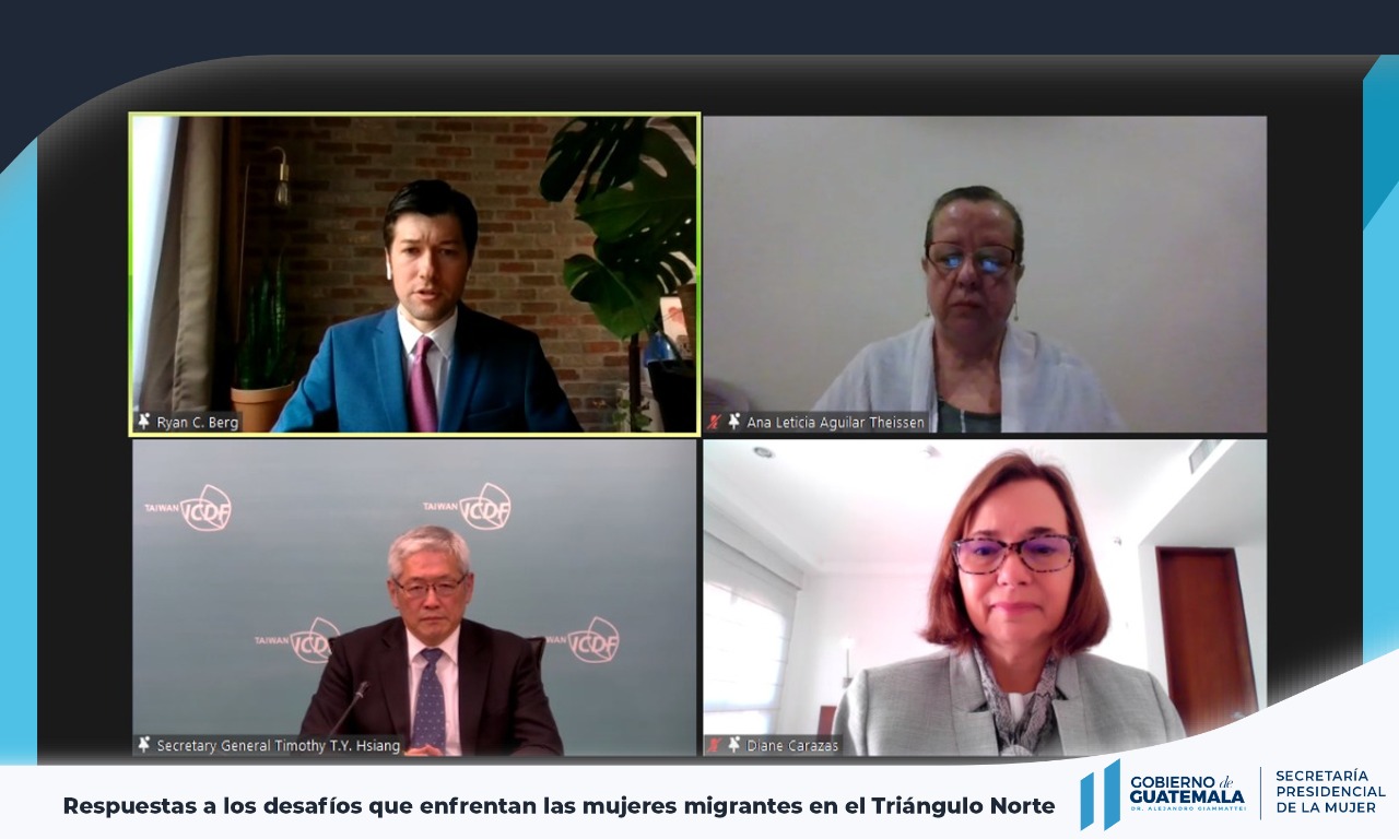 La Secretaria Presidencial de la Mujer, Ana Leticia Aguilar Theissen participó en el panel “Respuestas a los desafíos que enfrentan las mujeres migrantes en el Triángulo Norte” organizado por Center for Strategic and International Studies con el objetivo de explorar las causas fundamentales de la migración y los desafíos que enfrentan las mujeres migrantes, la situación de los trabajos informales de las mujeres y presiones sociales y otras barreras para el empoderamiento económico de las mujeres.