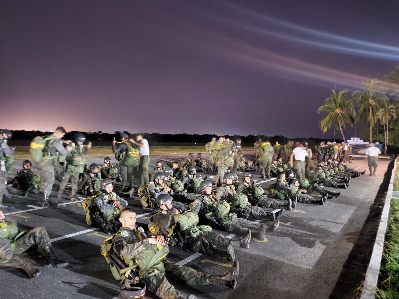 La Escuela de Paracaidismo Militar, con sede en el interior de Brigada de Paracaidistas “General Felipe Cruz”, Escuintla, como parte del entrenamiento de de operaciones aerotransportadas, realizó este martes 22 de febrero, un salto táctico nocturno, en la zona de salto La Florida.