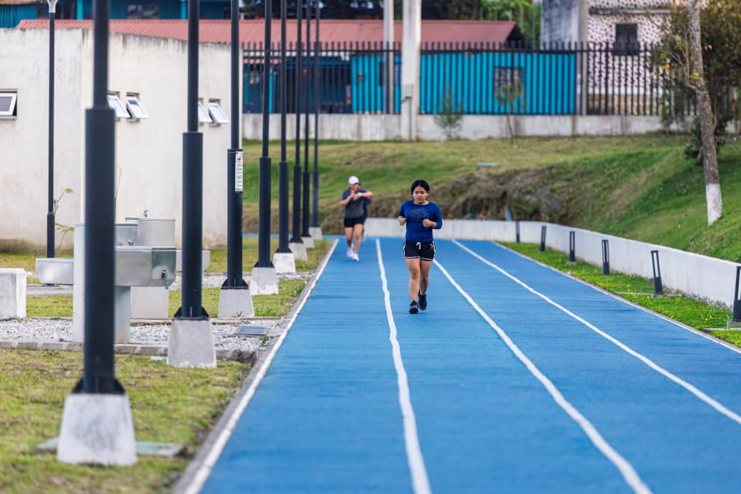 El Parque Deportivo y Recreativo de la Paz, ubicado en 1 avenida 6-10, zona 8, Cantón Las Casas, Cobán, Alta Verapaz, pone a disposición de la población una pista de atletismo que promueve la actividad física y el bienestar de niñas, niños, jóvenes y adultos de la región.
