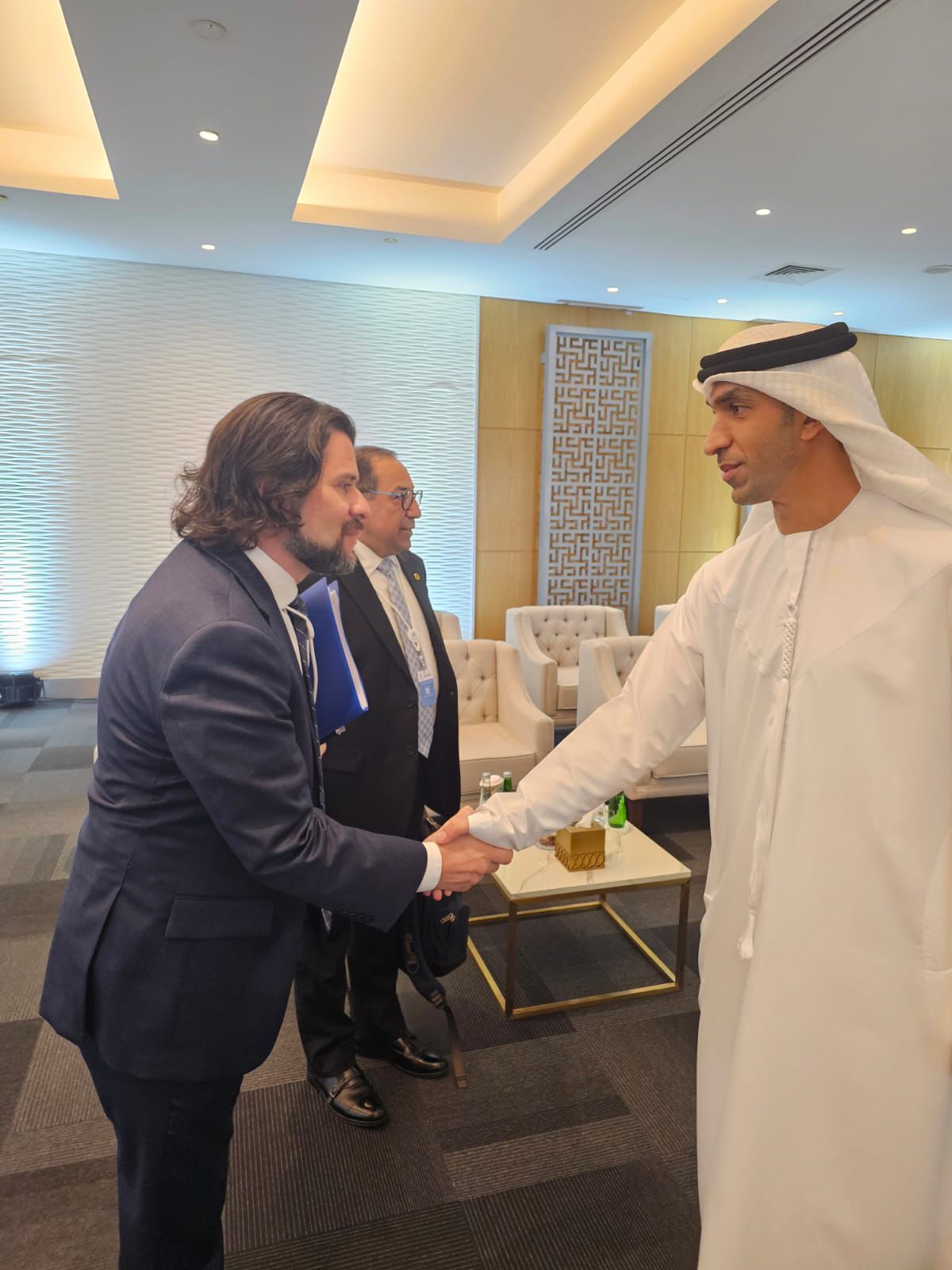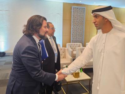 El Congreso AIM, reconocido como la principal plataforma de inversiones del Oriente Medio, busca generar oportunidades de inversión y promover la solidaridad y el desarrollo de relaciones económicas entre naciones. En este contexto, el Viceministro Romero mantuvo importantes encuentros con figuras destacadas, incluyendo al ministro de comercio exterior de Emiratos Árabes Unidos Dr. Thani Bin Ahmed Al-Zeyoudi, quien es responsable de supervisar el desarrollo del comercio exterior no petrolero, la expansión de las asociaciones comerciales globales y el aumento de las exportaciones en EAU y al director de promoción de inversiones de Sharjah Shaikh Majid Faisal Khalid Al Qasemi.