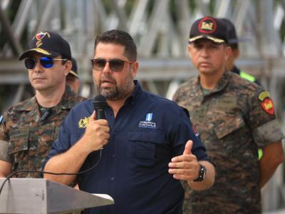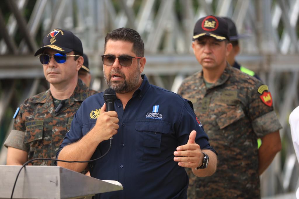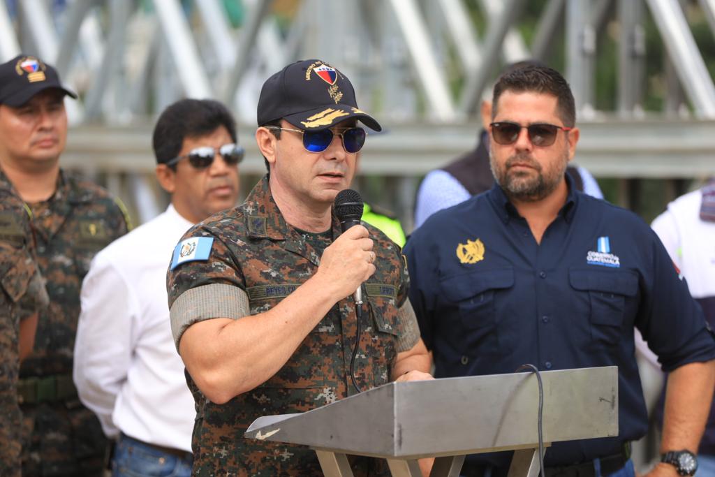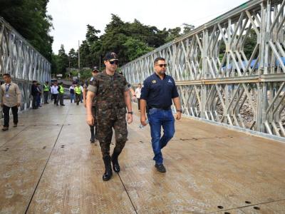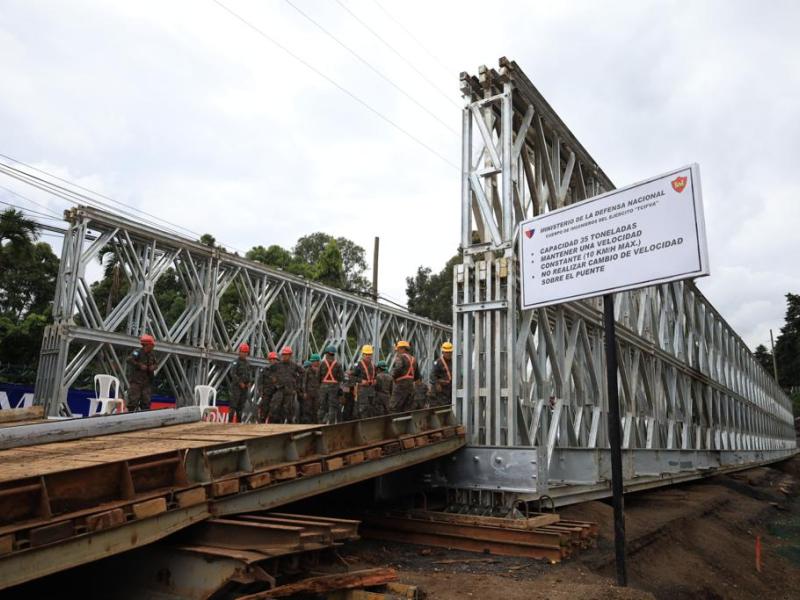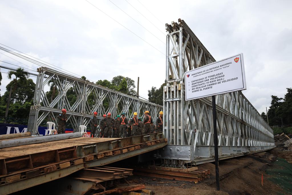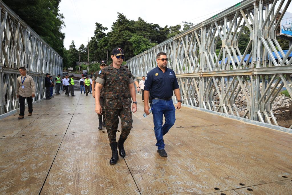 Autoridades del Ministerio del Ministerio de Comunicaciones, Infraestructura y Vivienda -CIV- y del Ministerio de la Defensa Nacional -MINDEF-, por medio de una conferencia de prensa brindaron detalles sobre la habilitación del puente colocado en el km 17.5 de la CA-09 sur, jurisdicción del municipio de Villa Nueva.