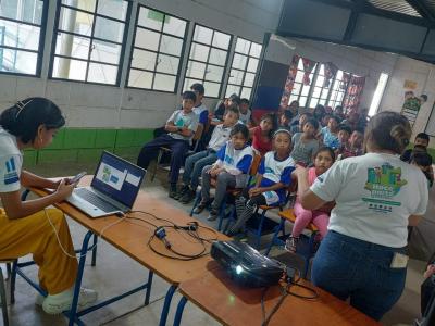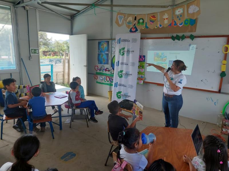 La Dirección de Formación y Participación Social del Ministerio de Ambiente y Recursos Naturales (MARN) desarrolló el programa de Pequeños Guardianes Ecológicos con estudiantes de la Escuela Los Llanos de San Juan Sacatepéquez.