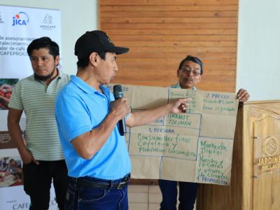 Este taller se realizó como parte del Proyecto de Asesoramiento para el Fortalecimiento de la Cadena de Valor del Café en Guatemala (CAFEPROCO), el cual tiene como principal objetivo, fortificar las capacidades de pequeños productores para conseguir una producción rentable y sostenible, con valor agregado en sus procesos de producción y comercialización.