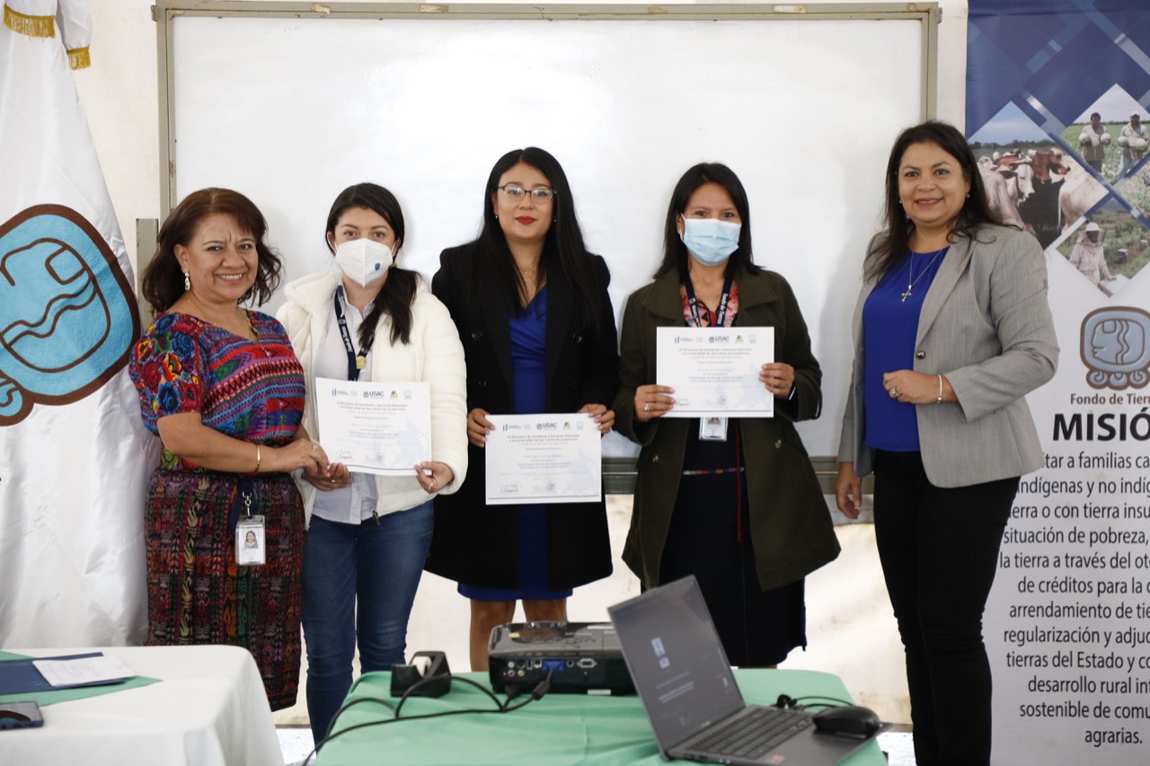 Personal de las oficinas centrales del Fondo de Tierras (Fontierras), y de las oficinas departamentales recibieron su certificación por haber culminado el Diplomado de educación ambiental con énfasis en cambio climático del Ministerio de Ambiente y Recursos Naturales (MARN).