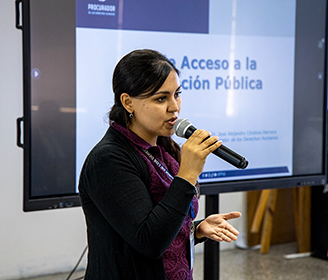 Después, la licenciada Salvatierra brindó más detalles de la LAIP. Al referirse a los enlaces, dijo que es el personal de cada unidad que debe conocer a cabalidad la misma para poder atender las solicitudes de información pública y así proveer las respuestas correspondientes.