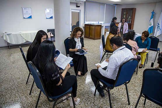 La licenciada, Ana Salvatierra, educadora de la Secretaría de Acceso a la Información Pública de la PDH, estuvo a cargo de la capacitación. Dividió al personal en cuatro grupos para que cada uno analizara los cuatro pilares de la LAIP y luego, un representante de cada uno, expusiera sus conclusiones.