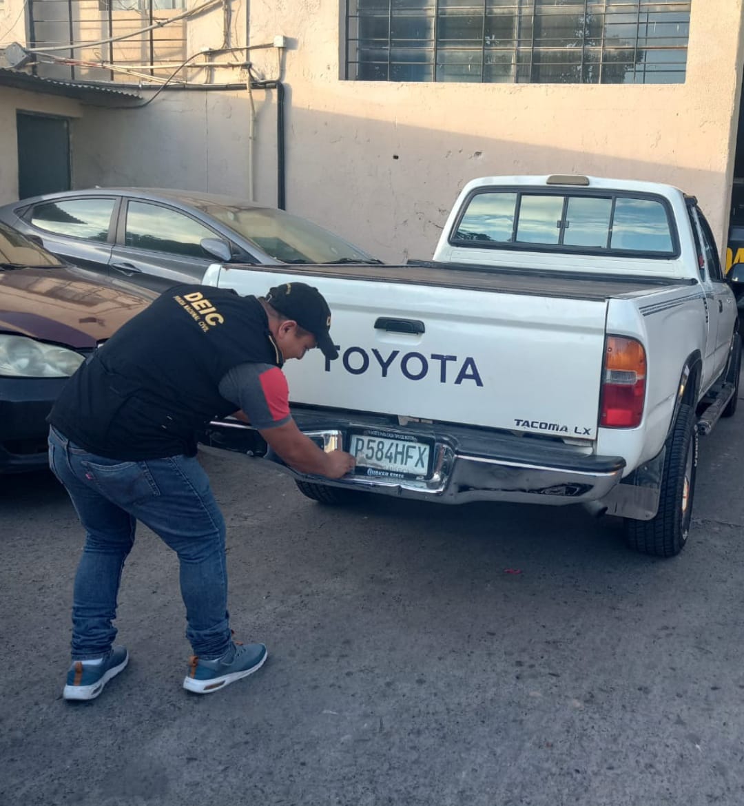 Personal del Departamento contra la Delincuencia Organizada, de la sección contra el robo y hurto de vehículos de Policía Nacional Civil (PNC), consignaron un automóvil, que fue obtenido mediante estafa en la 15 avenida 10-86, zona 1 capitalina. El vehículo es un Pickup con placas P-584HFX, Marca Toyota, línea Tacoma extracab, modelo 1995.