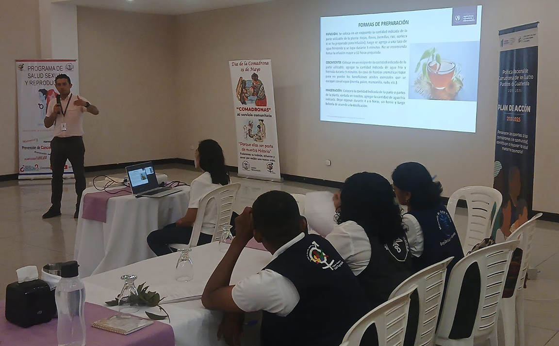 La actividad fue impartida por David Bámaca, nutricionista del MAGA, quien brindó orientaciones relativas a la implementación de huertos con plantas medicinales, considerando el arraigo cultural que la medicina natural que tienen las comunidades rurales guatemaltecas.