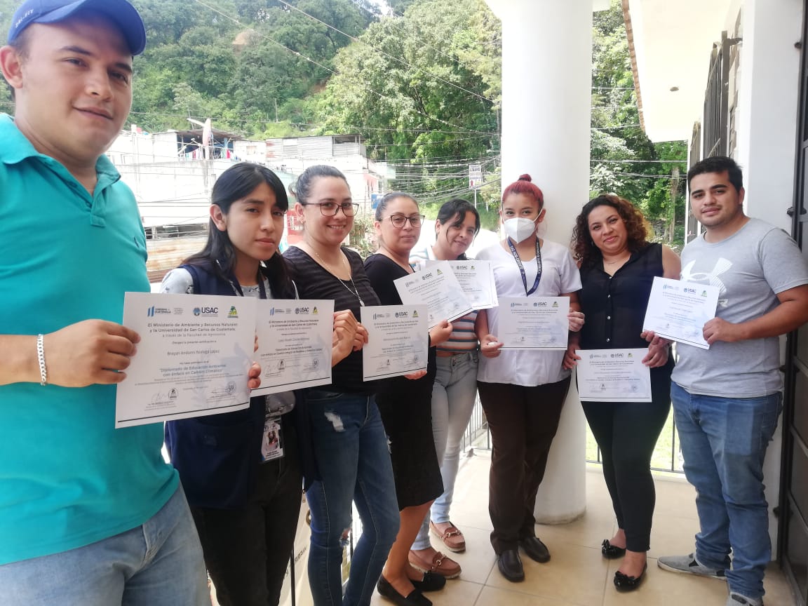 Colaboradores del Centro de Salud de San Pedro Ayampuc fueron certificados por el Ministerio de Ambiente y Recursos Naturales (MARN) con el Diplomado de Educación Ambiental con Énfasis en Cambio Climático.
