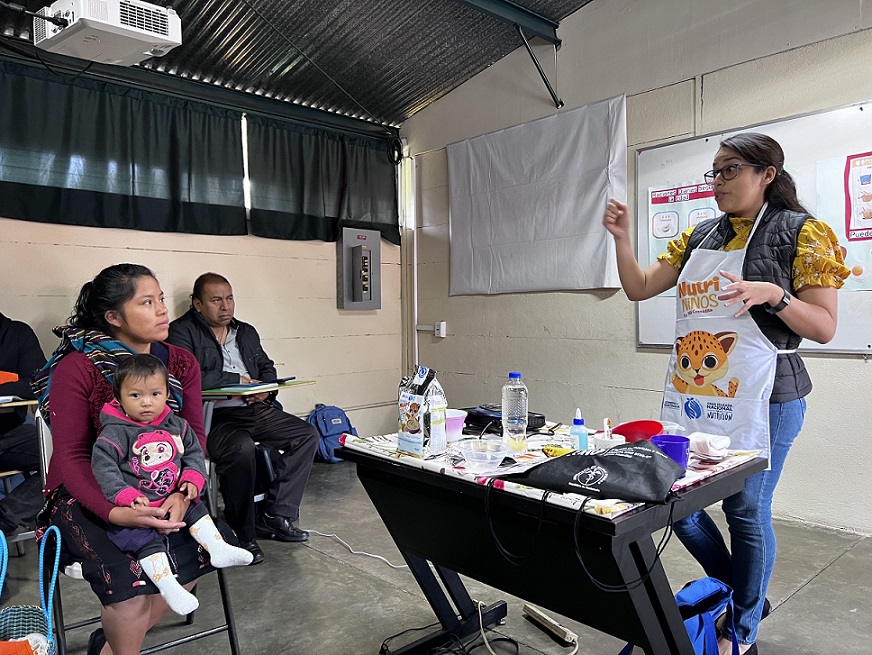Durante las capacitaciones, los nutricionistas resaltan la importancia de preparar el Alimento Complementario Fortificado NutriNiños, de manera adecuada, para aprovechar todos sus nutrientes y cómo se puede mezclar con diferentes alimentos locales.