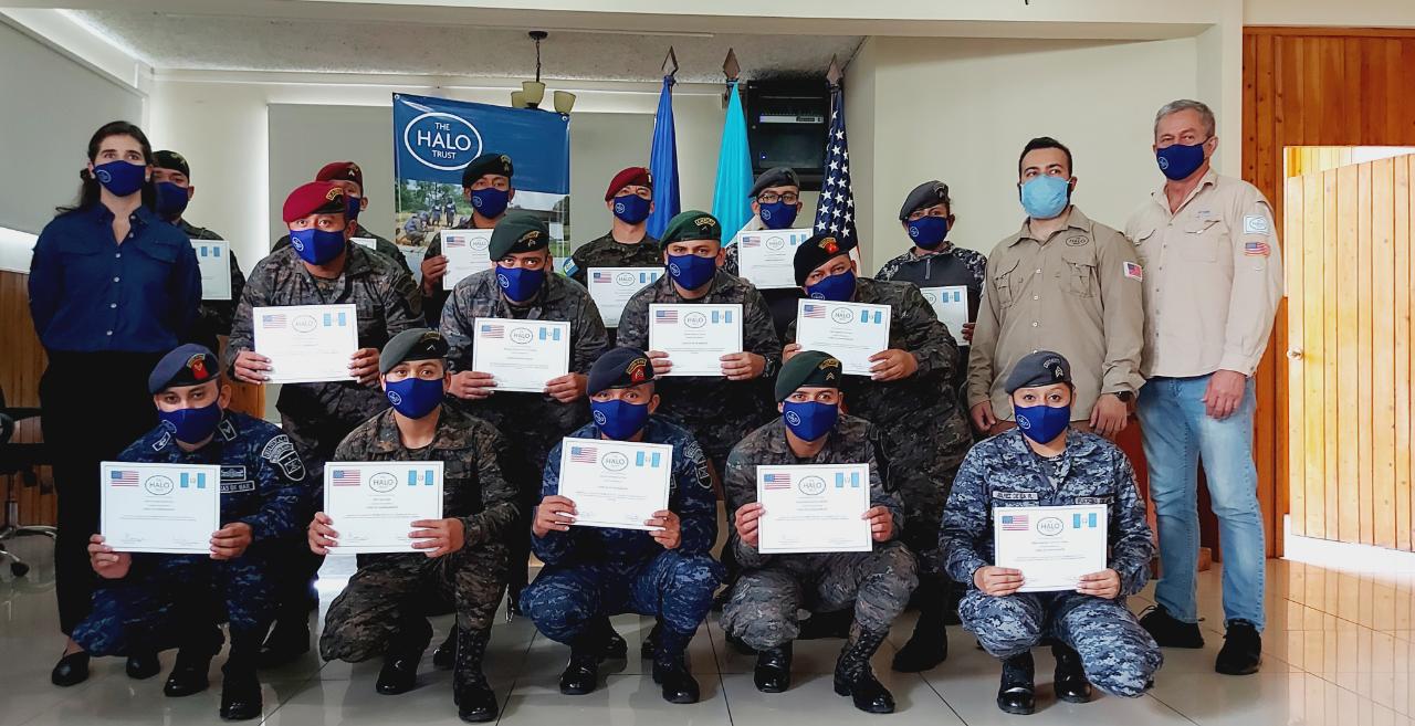 El pasado 3 de septiembre Soldados de diferentes Unidades Militares del Ejército de Guatemala, culminaron satisfactoriamente, los cursos de Jefe de Almacén así como el de Guardalmacén, cursos que fueron impartidos por la organización benéfica "HALO Trust" y que tienen como objetivo que los alumnos aprendan la forma correcta y eficiente del almacenaje y conservación de armas y municiones, conocimientos que le permitirán a este personal mantener un control más certero de esos artículos, lo que fortalece las diversas capacidades militares del Ejército en pro del servicio de los guatemaltecos.