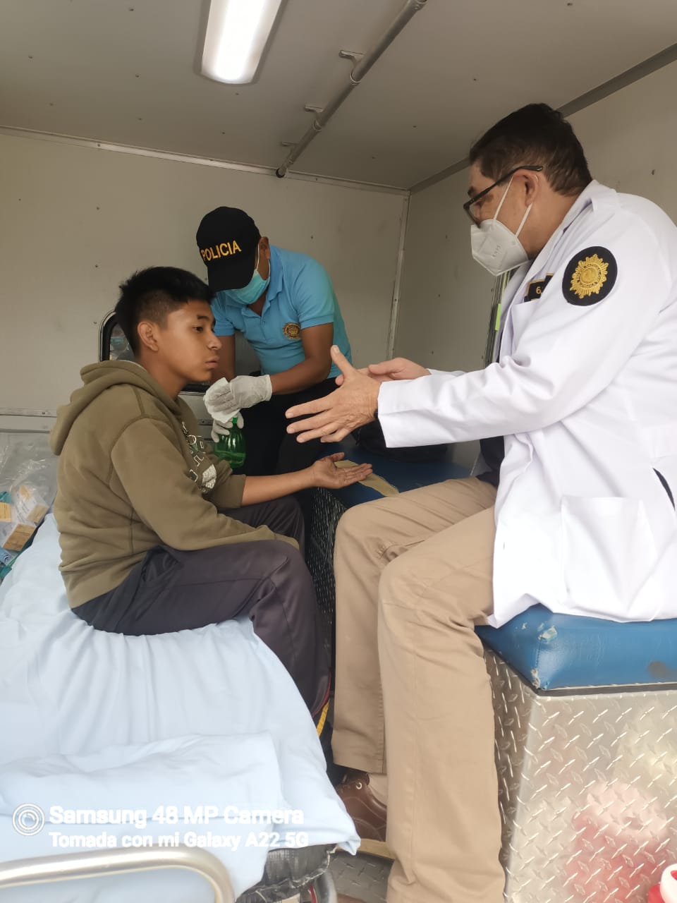 Bajo instrucciones del Ministro de Gobernación, David Napoleón Barrientos, esta mañana personal de la Subdirección de Salud Policial (SGSP) de la Policía Nacional Civil (PNC), desarrolló una jornada médica en el asentamiento, Los Eucaliptos, zona 21, donde ocurrió el incendio el pasado lunes.