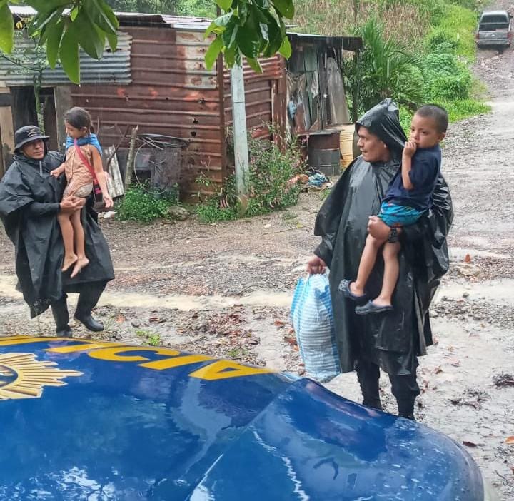 Ante esto, el personal policial en apresto ha evacuado a familias que se encuentran en riesgo de San Juan Cotzal, Quiché, para trasladarlas hacia albergues quienes residen a orillas de ríos.
