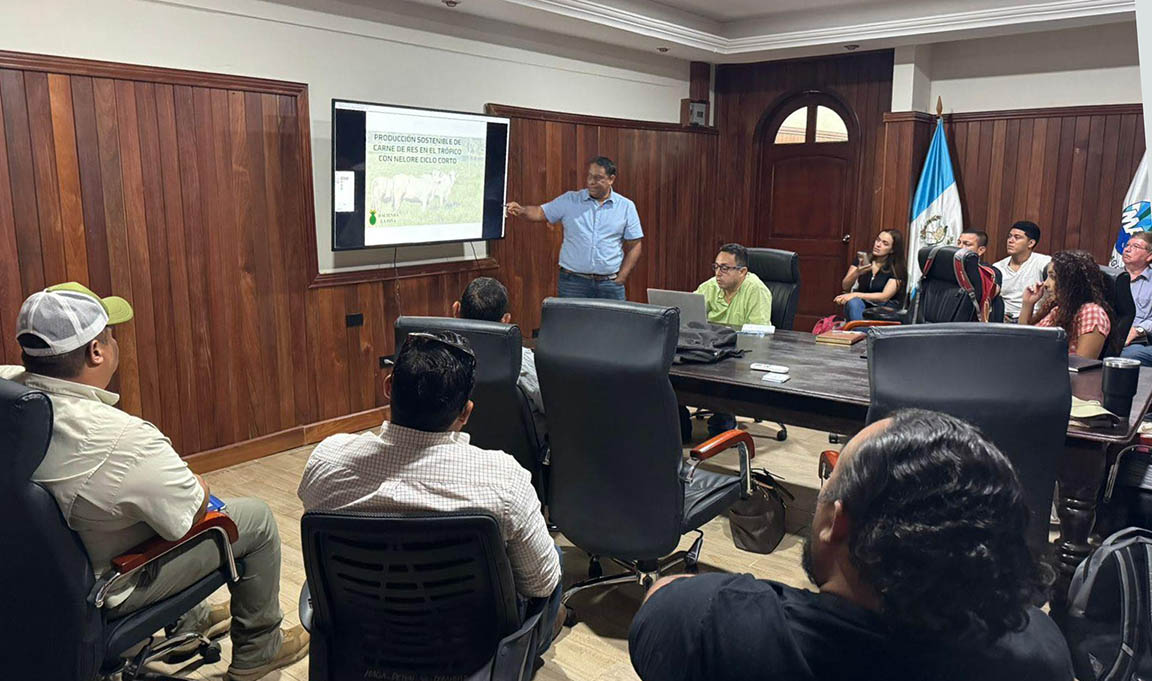 Durante una reunión técnica de trabajo, especialistas presentaron los avances alcanzados en más de 100 fincas que implementan prácticas de ganadería sostenible en el departamento de Petén, en el marco del proyecto Modelo de Ganadería sin Deforestación y de Bajas Emisiones.