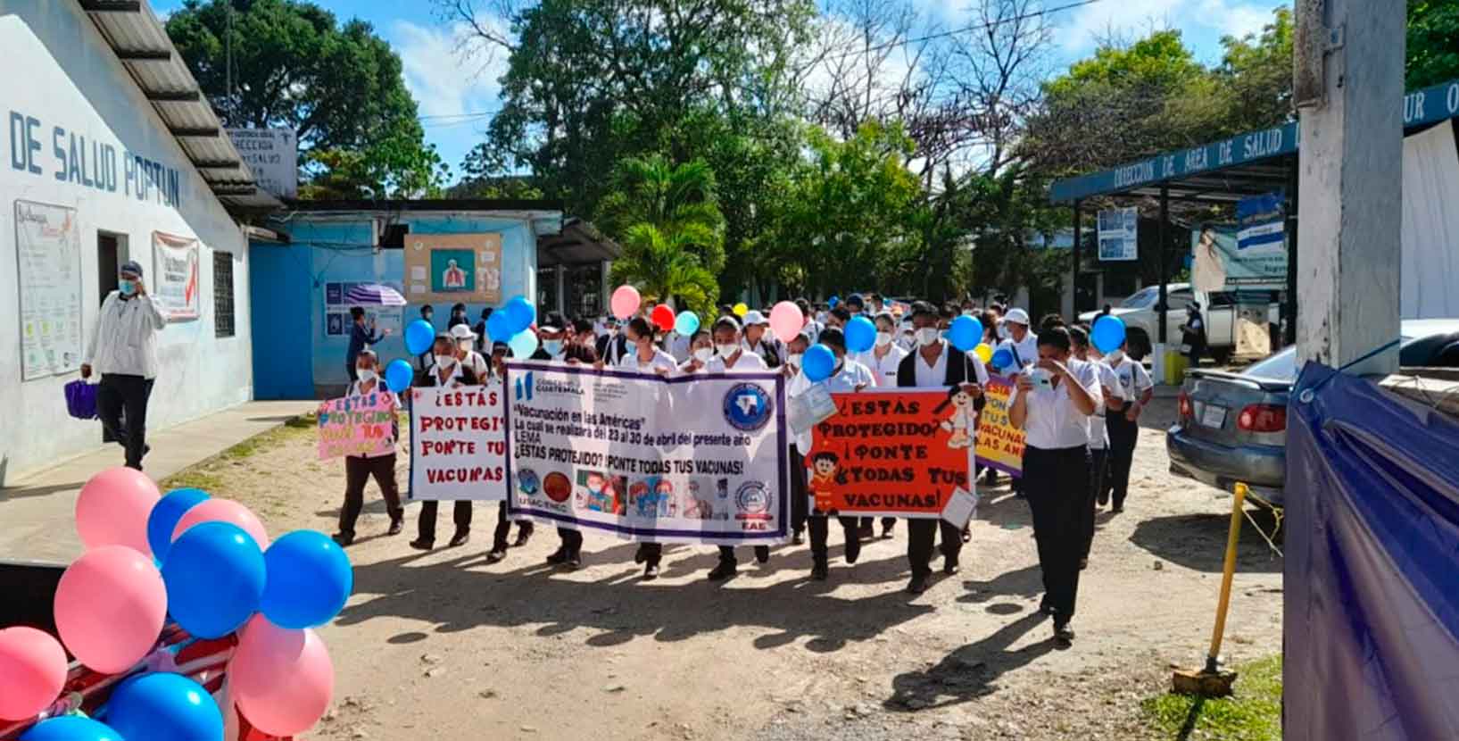 Médicos, vacunadores, enfermeros, trabajadoras sociales y psicólogos se sumaron a este esfuerzo por medio de la participación en la caminata realizada por estudiantes de enfermería del distrito de Poptún, quienes recorrieron la Avenida 15 de Septiembre para promover la vacunación integral, como herramienta preventiva ante enfermedades emergentes.