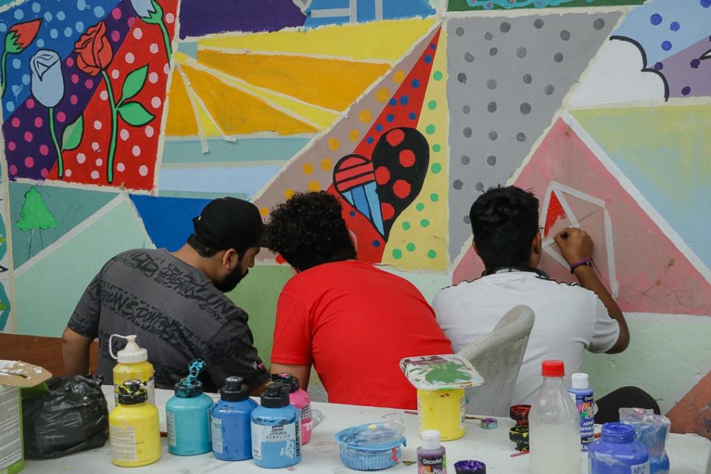“Hemos tenido clases teóricas sobre técnica, perspectiva, teoría del color y otros temas; y todo esto lo estamos aplicando en el mural que está inspirado en el arte pop. Cada sección incluye temas relacionados con la niñez y adolescencia, así como con la vida y la naturaleza”, expresó Del Valle.