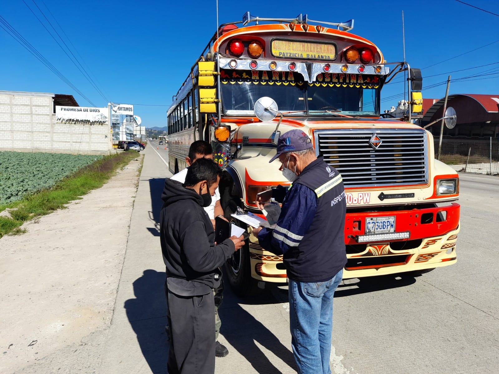 Los inspectores de la DGT verificarán el cumplimiento de los protocolos de bioseguridad en unidades del transporte extraurbano que incluye el aforo regulado según el color del municipio que refleje el tablero de alertas del COVID-19 del Ministerio de Salud Pública y Asistencia Social -MSPAS-. Este indica que los municipios en color rojo y anaranjado los autobuses tienen permitido circular con el 50 por ciento de aforo, en color amarillo el 75 por ciento y en color verde el 100 por ciento.